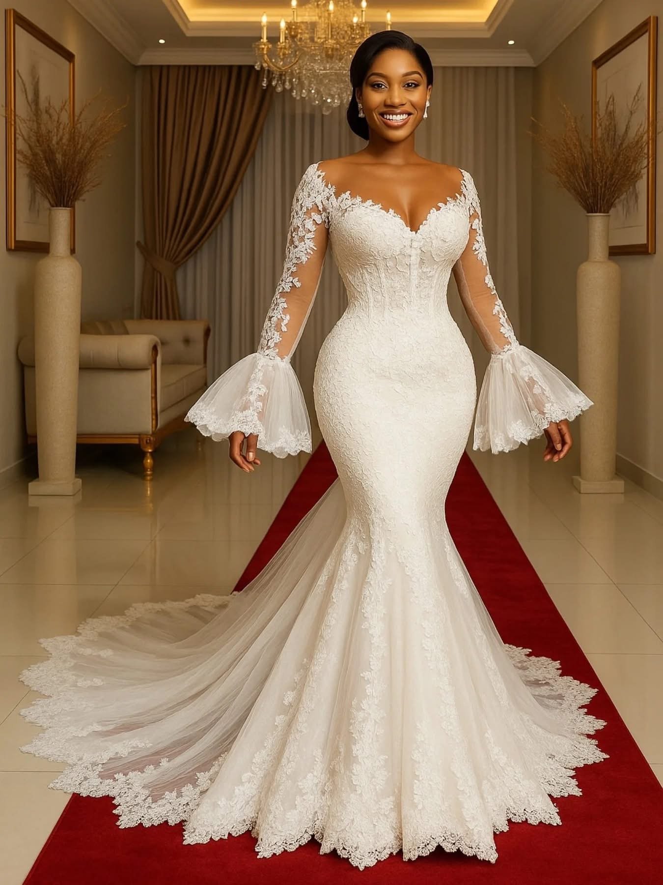 The Flute Arms wedding dress is crafted with meticulous care to merge comfort with flawless design. Made from premium fabrics, this gown feels as luxurious as it looks. The lightweight material ensures ease of movement, while the carefully tailored fit accentuates your natural silhouette. The flute sleeves not only add aesthetic appeal but also lend a dreamy flow to your overall look. Ideal for both an indoor or outdoor setting, this dress is truly versatile for any wedding theme or environment.